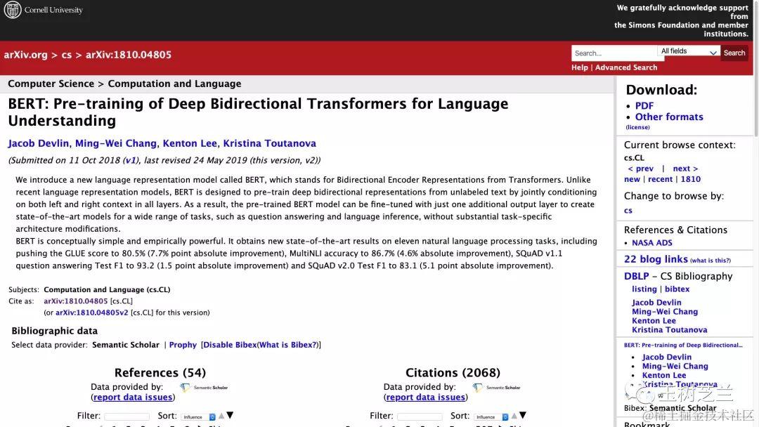 你找到了 BERT 的原始论文,它就在预印本平台 arxiv 上面。