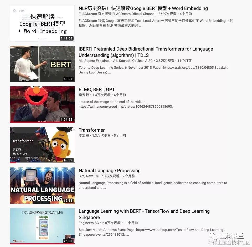 中英文视频都有。而且排名靠前的这些教程,往往都做得品质精良,让你迅速了解 BERT 的来龙去脉。