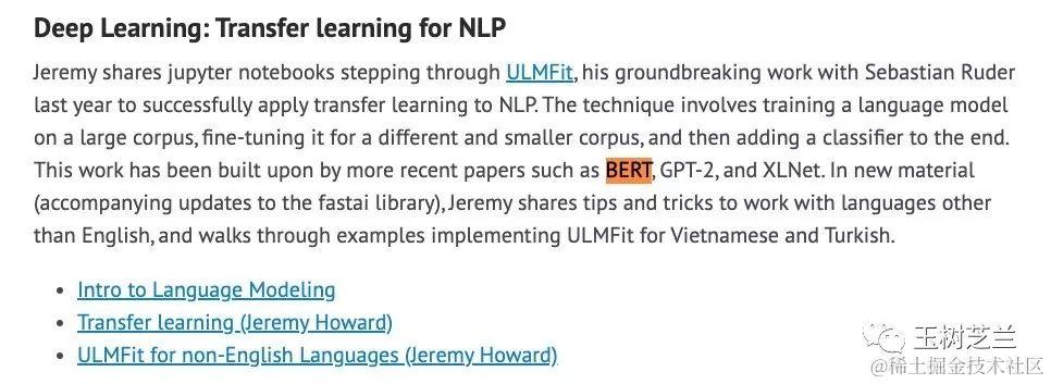 但你如果喜欢更灵活地学习,可以直接到 fast.ai 上面。因为这里的特点是快速迭代,紧贴前沿,而且刚好就有一门 NLP 课程,内容非常新颖。