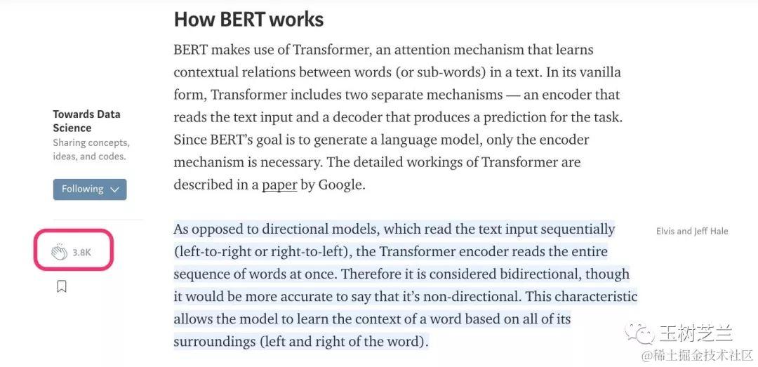 标红的地方显示,已经有超过3800人点赞了。这在 Medium 平台的学术科普类文章里,算是非常受欢迎了。