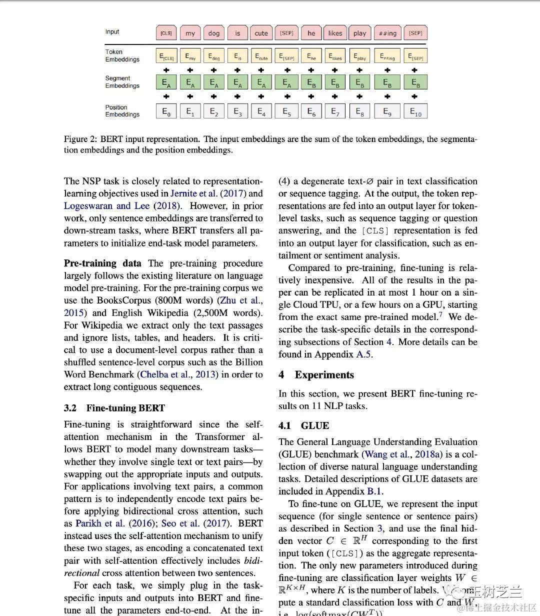 在论文里, BERT 模型输入文本的预处理,是这个样子的。你可能会很疑惑,特殊的 token (例如论文中出现的 [CLS] 和 [SEP] ),究竟如何设置,如何起作用?