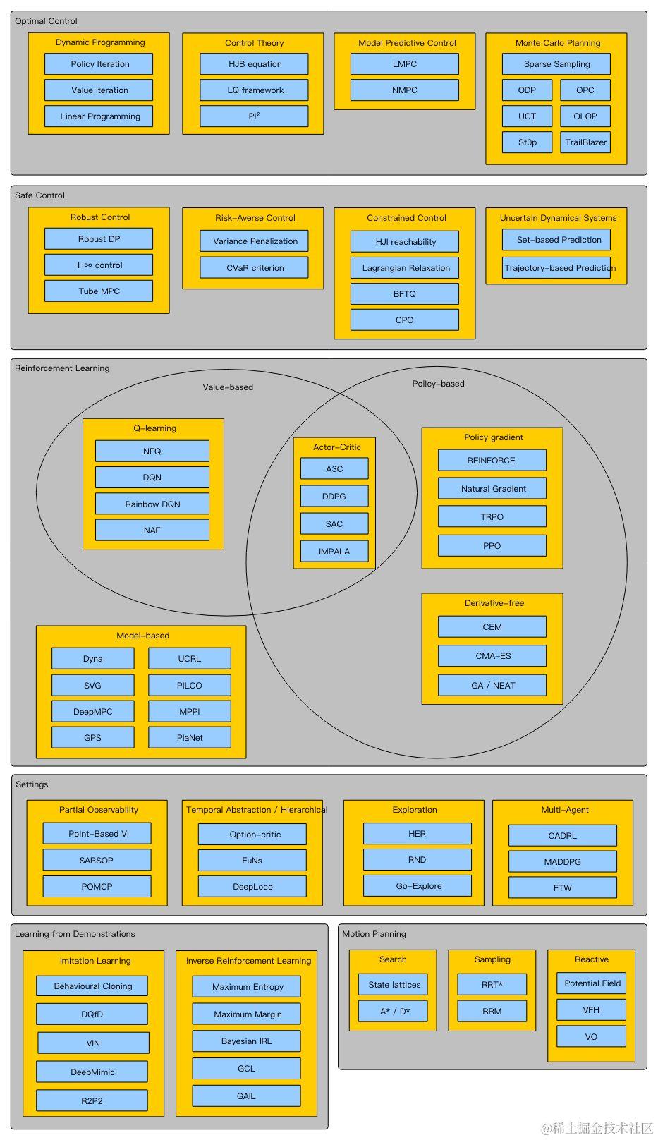本工作是一项由深度强化学习实验室(DeepRL-Lab,见文末)发起的公益、开放、开源项目,联合Deep Reinforcement Learning领域的30+位博士,100+位硕士共同完成,旨在于为每一位深度强化学习爱好者提供一份快速、全面、详细的学习资料。本工作整体分为12部分,包含书籍、课程、环境、框架、算法、开源项目、论文、应用等多个领域。