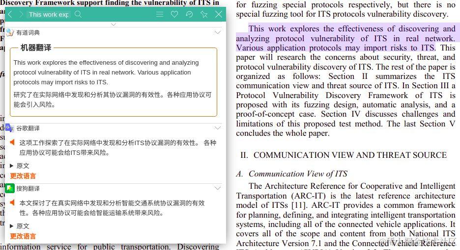 自带 PDF 阅读器。丰富的生态,配合其它工具可实现浏览器外划词,OCR 查词(图片文字识别)。