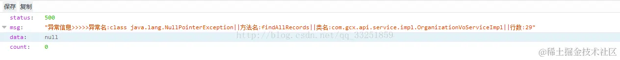 我们在Service的findAllRecords 方法中定义了一个空指针异常用来做测试,Service中的所有异常都通过throws向上抛出