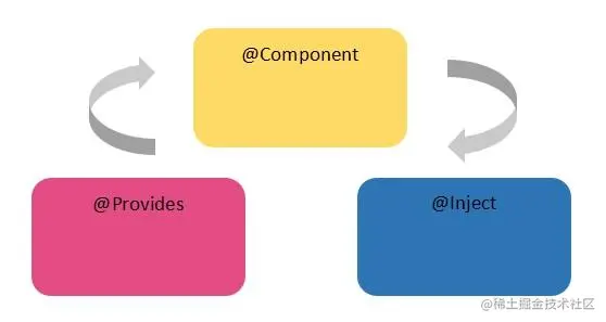 @Provides描述这种来源 - 依赖的注入方,将提供方的实现注入到需求方的角色,比如使用