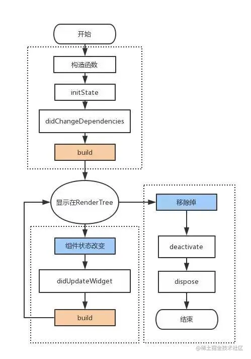 | dispose | 当 State 被永久地从视图树中移除时,Framework 会调用该函数。在销毁前触发,我们可以在这里进行最终的资源释放。在调用这个函数之前,总会先调用 deactivate 函数。 |