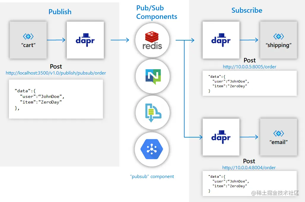 在 dapr 的架构中,核心的三个组成部分:API,Building Blocks 和 Components。