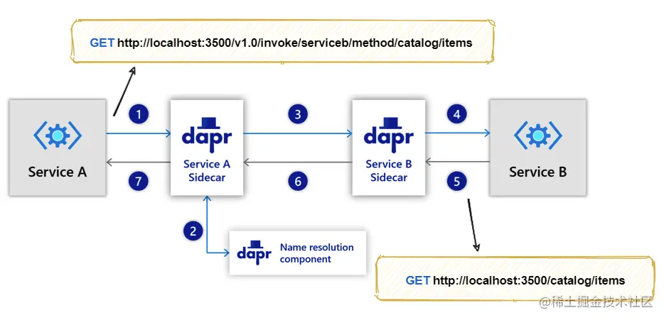 而 dapr sidecar 没有实现类似的能力,在 kubernetes 平台下,dapr 应用间的服务互访,还是依赖 kubernetes service 提供的随机负载均衡。这是 dapr 的短板,dapr runtime 不感知其他 endpoint 的信息, 因此 dapr 甚至不能提供 round robin 的负载均衡策略。