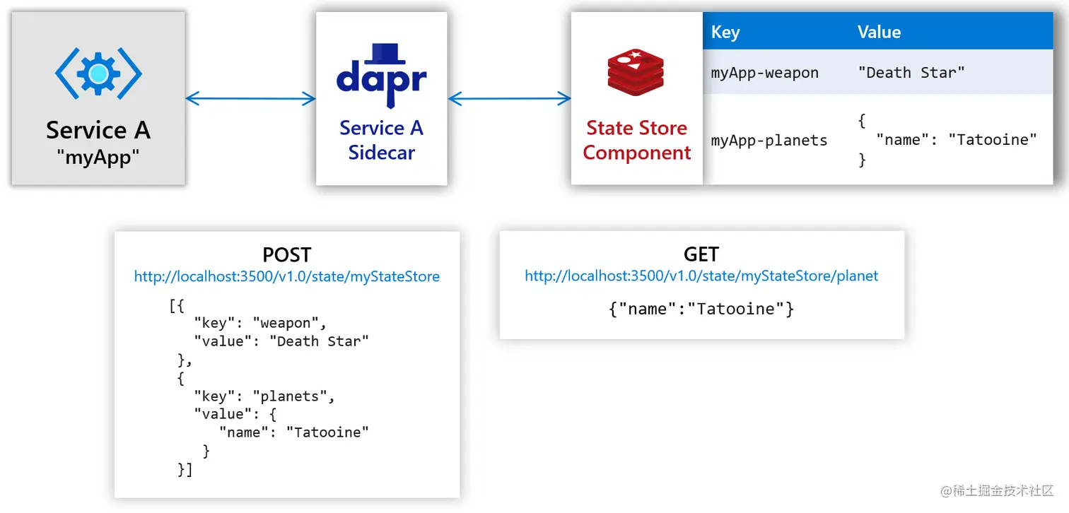 State 提供一致的键值对存储抽象,这里不包括关系型或者其他类型的存储。 总的来说,在云原生领域(以 kubernetes 和 etcd 为代表),键值对存储的适用范围更广。另外相比其他存储类型,键值对存储引擎的接口抽象更容易实现,即使是关系型数据库,也能轻松的实现对键值对 API 的支持。