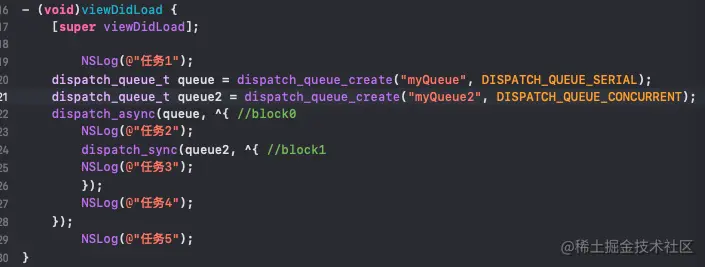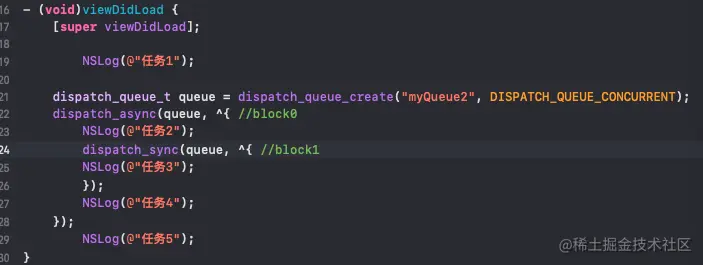 dispatch_sync(queue, block); queue:队列, block:任务.