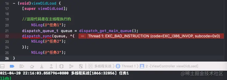 同样的queue是主队列,而任务2是放在主队列里面的,而任务2主队列前面是viewDidLoad方法,所以任务2会等viewDidLoad执行完,也就是**任务2会等任务3执行完才会执行,**那就很明显了着2个任务相互等待造成死锁!