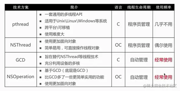 NSOperation:它是基于GCD(底层是GCD),它比GCD多了一些更简单实用的功能,使用起来更加面向对象,它的语言也是OC,线程的生命周期也是自动管理,所以用起来也比较方便,也是经常被使用