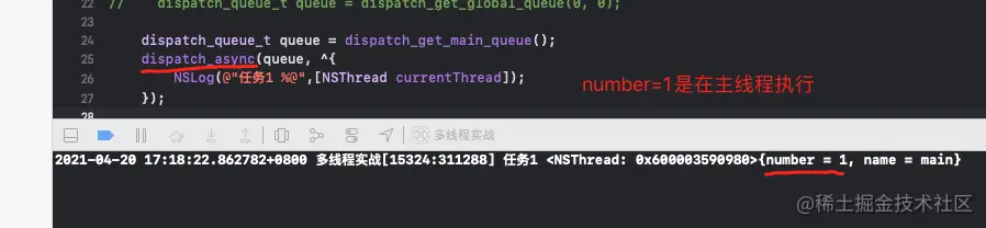 答案是否定的,因为我们知道有个特殊的串行队列,就是主队列,只要是主队列,不管你是同步还是异步线程,都是在当前线程执行,不会开启新的线程,请看下图: