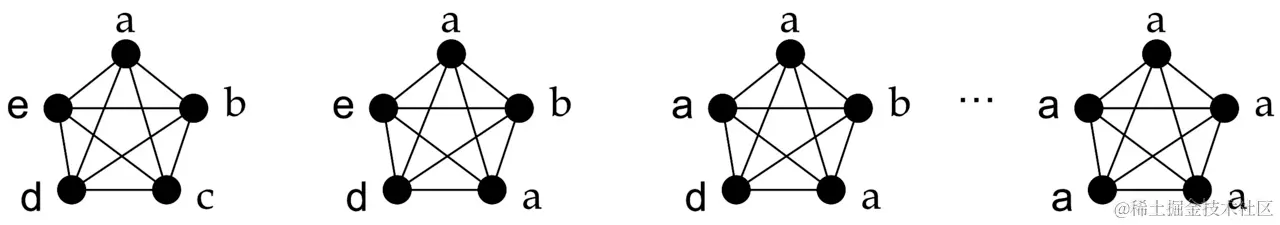 比如a的社区就是a,b的社区就是b,c的社区就是c,d的社区就是d,e的社区就是e。