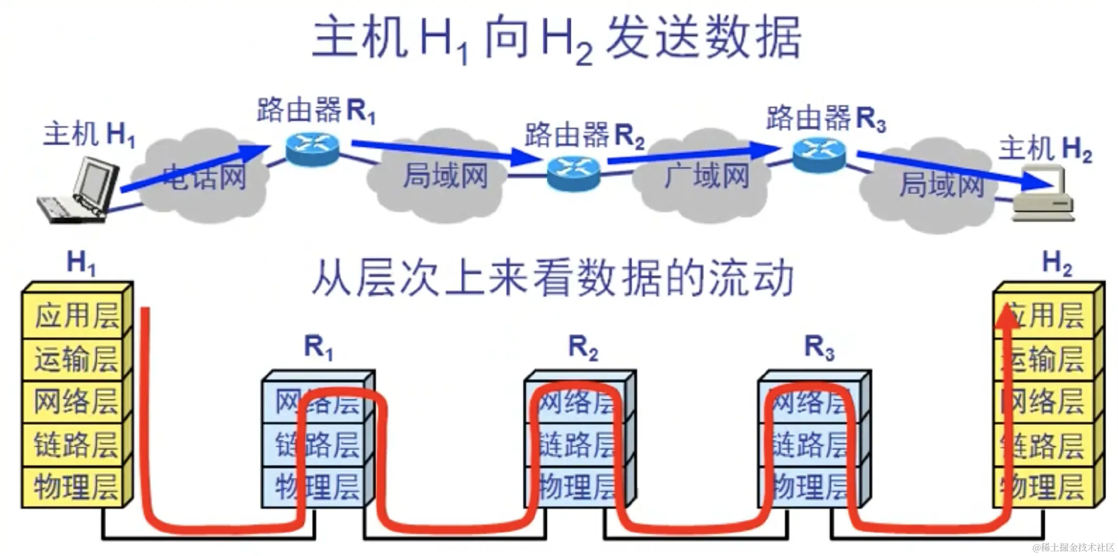 网络层只是根据IP地址将源主机发出的数据包传送到目的主机,而传输层则负责将数据可靠地传送到主机上运行的进程的相应端口。