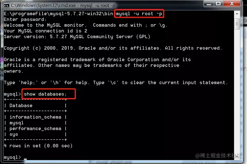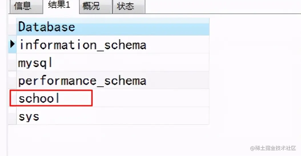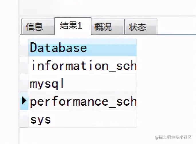 通过show DATABASES;命令查看自己下面有哪些数据库。