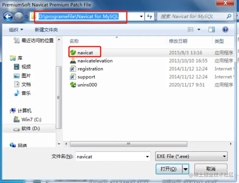 打开之后,游览到安装Navicat for MySQL的目录,完成即可。