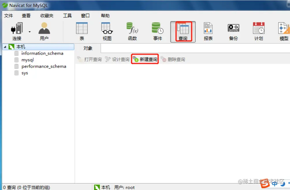 连接好之后,点击查询,再点击新建查询,就可以写SQL了。