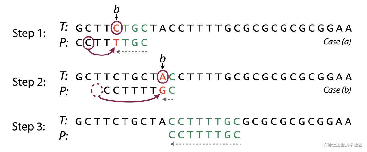 BM算法包含两部分,分别是坏字符规则(bad character rule)和好后缀规则(good suffix shift)。