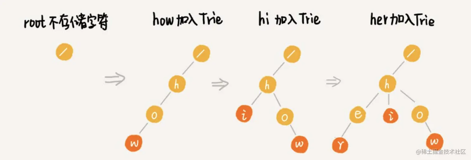 我们可以对敏感词字典进行预处理,构建成Trie树结构。这个预处理的操作只需要做一次,如果敏感词字典动态更新了,比如删除、添加了一个敏感词,那我们只需要动态更新一下Trie树就可以了。