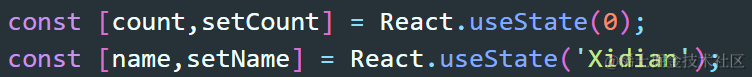 React-54:stateHook(让函数式组件能够使用state) Always_positive 2021-04-21 362 阅读1分钟 什么是Hook? Hook是React 16.8.0版本新增的新语法 可以让使用者在函数组件中使用state以及其他的react特性 使用useState 使用数组的解构赋值,数组的解构赋值不需要和原本的名字一致 0,'xidian’是我们的初始化状态,setXxx则是方法 两种改变状态的写法