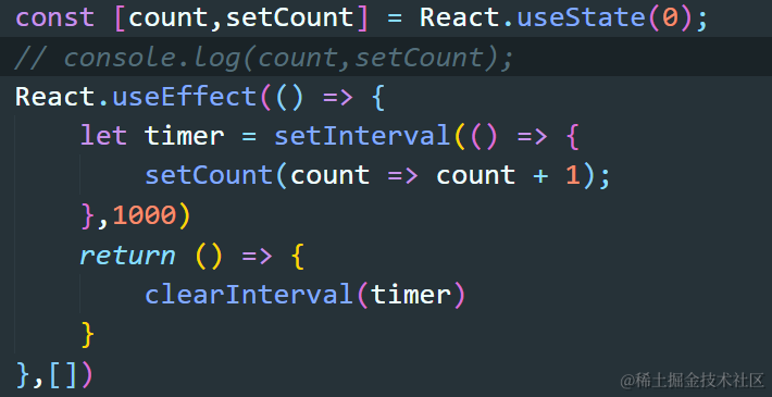 这个回调函数相当于是componentDidMount,这个回调函数可以返回一个回调函数,返回的这个回调函数则是相当于componentWillUnmount。 - 第二个参数代表着监控谁,一旦监控的对象发生了变化,则要调用第一个参数里的回调函数,第二个参数不写代表监控所有的状态,写谁代表监控谁,所以在下面的案例中,传入的是一个空数组,代表谁也不监控,这就实现了第一个回调函数的componentDidMount的作用。