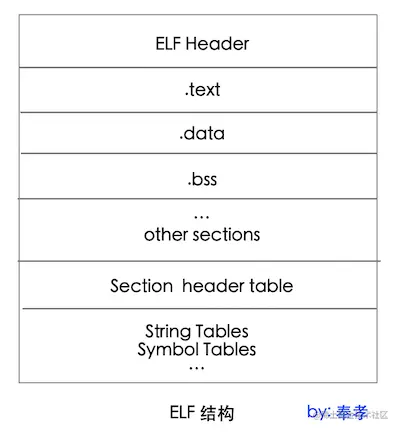 目标文件中的内容至少有编译后的机器指令代码、数据,还包括了链接时所需要的一些信息,比如符号表、调试信息、字符串等。一般目标文件将这些信息按照不同的属性,以段的形式存储。如:代码段、数据段、只读数据段、其他段、文件头、段表、重定位表、字符串表、符号表、调试表等。
