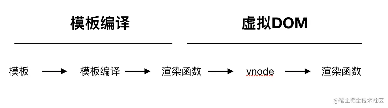 模板编译的作用是生成渲染函数,通过执行渲染函数生成最新的vnode,最后根据vnode进行渲染。