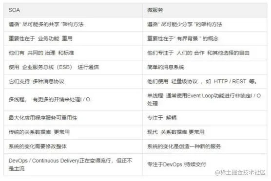 SOA 和微服务之间的主要区别如下: