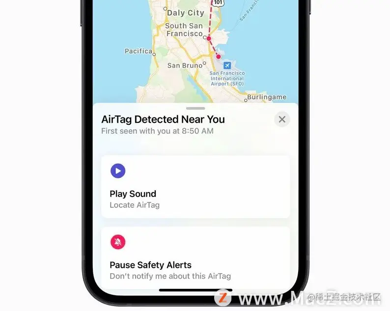 AIrTag旨在阻止不必要的跟踪。如果您是iPhone或iPad用户,则内置的“查找我”应用会通过在屏幕上显示“发现AIrTag与您一起移动”消息,通知您随着时间的推移看到未知的AIrTag与您一起移动。即使您不使用iOS设备,如果长时间不与它注册的人在一起,AIrTag也会在移动时播放声音。