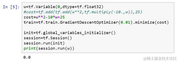 cost = tf.add(tf.add(w**2,tf.multiply(- 10.,w)),25)