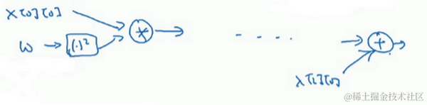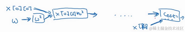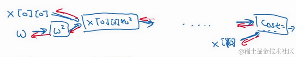 如果你看TensorFlow的使用说明,我只是指出TensorFlow的说明用了一套和我不太一样的符号来画计算图,它用了 , ,然后它不是写出值,想这里的 ,TensorFlow使用说明倾向于只写运算符,所以这里就是平方运算,而这两者一起指向乘法运算,以此类推,然后在最后的节点,我猜应该是一个将 加上去得到最终值的加法运算。
