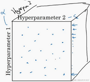 我已经解释了两个参数的情况,实践中,你搜索的超参数可能不止两个。假如,你有三个超参数,这时你搜索的不是一个方格,而是一个立方体,超参数3代表第三维,接着,在三维立方体中取值,你会试验大量的更多的值,三个超参数中每个都是。