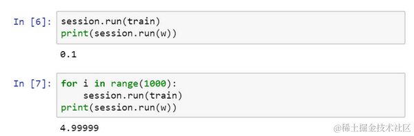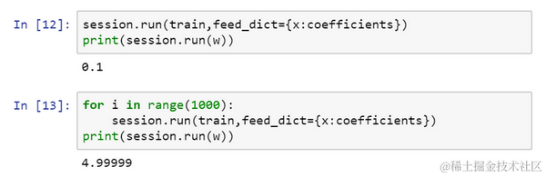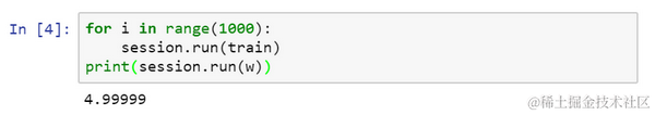 $session.run(train),它所做的就是运行一步梯度下降法。