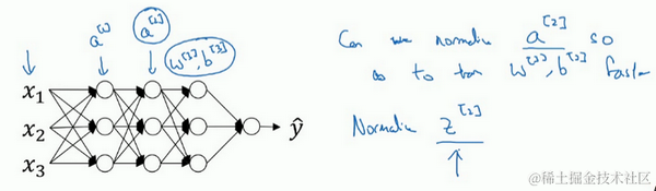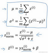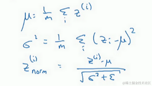 在神经网络中,已知一些中间值,假设你有一些隐藏单元值,从 到 ,这些来源于隐藏层,所以这样写会更准确,即 为隐藏层, 从1到 ,但这样书写,我要省略 及方括号,以便简化这一行的符号。所以已知这些值,如下,你要计算平均值,强调一下,所有这些都是针对 层,但我省略 及方括号,然后用正如你常用的那个公式计算方差,接着,你会取每个 值,使其规范化,方法如下,减去均值再除以标准偏差,为了使数值稳定,通常将 作为分母,以防 的情况。