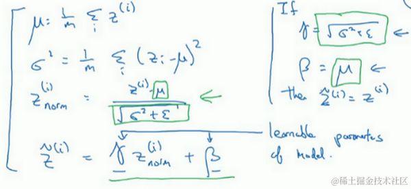 通过对 和 合理设定,规范化过程,即这四个等式,从根本来说,只是计算恒等函数,通过赋予 和 其它值,可以使你构造含其它平均值和方差的隐藏单元值。