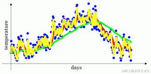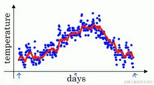你得到了移动平均值,每日温度的指数加权平均值。