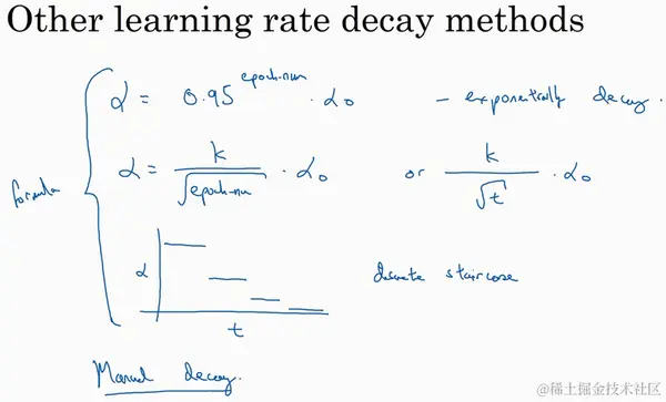 比如,这个叫做指数衰减,其中 相当于一个小于1的值,如 ,所以你的学习率呈指数下降。