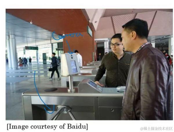 这张图上是一个研究员做的人脸识别门禁,是百度的林元庆研究员做的。这是一个相机,它会拍下接近门禁的人,如果它认出了那个人,门禁系统就自动打开,让他通过,所以你不需要刷一个RFID工卡就能进入这个设施。系统部署在越来越多的中国办公室,希望在其他国家也可以部署更多,你可以接近门禁,如果它认出你的脸,它就直接让你通过,你不需要带RFID工卡。