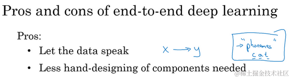 假设你正在搭建一个机器学习系统,你要决定是否使用端对端方法,我们来看看端到端深度学习的一些优缺点,这样你就可以根据一些准则,判断你的应用程序是否有希望使用端到端方法。