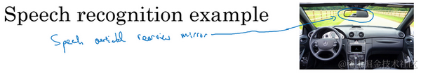 我们来看另一个样本,假设你正在开发一个全新的产品,一个语音激活汽车后视镜,这在中国是个真实存在的产品,它正在进入其他国家。但这就是造一个后视镜,把这个小东西换掉,现在你就可以和后视镜对话了,然后只需要说:“亲爱的后视镜,请帮我找找到最近的加油站的导航方向”,然后后视镜就会处理这个请求。所以这实际上是一个真正的产品,假设现在你要为你自己的国家研制这个产品,那么你怎么收集数据去训练这个产品语言识别模块呢?