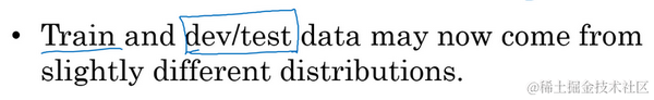 我的意思是我们已经设立过这样的训练集、开发集和测试集了,并且开发集和测试集来自相同的分布,但训练集来自不同的分布。