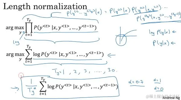 前面讲到束搜索就是最大化这个概率,这个乘积就是 ,可以表示成: …