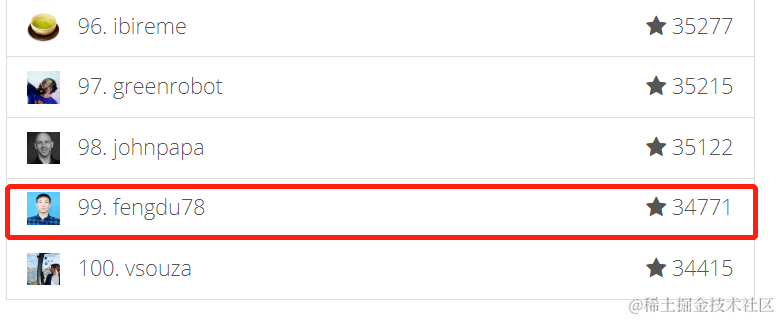 里程碑!我的github排名进入前100名! 机器学习初学者 2021-04-22 217 阅读1分钟 用数据说话! ! 我的github地址: github.com/fengdu78 github全球排名地址:\ gitstar-ranking.com github个人用户全球排名: gitstar-ranking.com/users 黄海广的github github.com/fengdu78