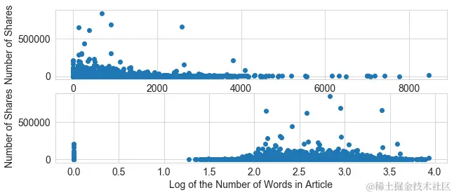 在例2-17中,我们使用 UCI 在线新闻数据集中的成对交互特征来预测每篇新闻文章的分享数量。交互特征导致精度超过单身特征。两者都比例2-9表现得更好,它使用文章正文中单词数的单个预测器(有或没有经过对数变换)。