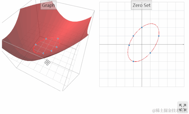 如上面的动态图所示,左图可以切换不同视角,查看三维图形;右图可以改变坐标点的位置,从而改变曲面形状。