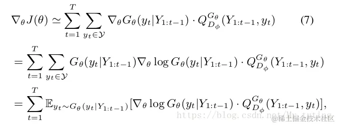 简单来说,就是生成器每生成一个 都会有相应的一个 ,而这个 后面的 都是未知的,只能按照生成器来补全,形成一个完整的句子,这个过程进行 次,会生成 个不同的完整句子(因为生成器的随机性,不可能出现相同的句子)。然后将这 个句子放到判别器中得到 个不同的打分结果,对这 个打分结果取平均作为该 最终的 ,论文中讲到当生成第 个 时: