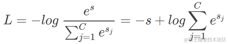 其中,C 为类别个数,小写字母 s 是正确类别对应的 Softmax 输入,大写字母 S 是正确类别对应的 Softmax 输出。