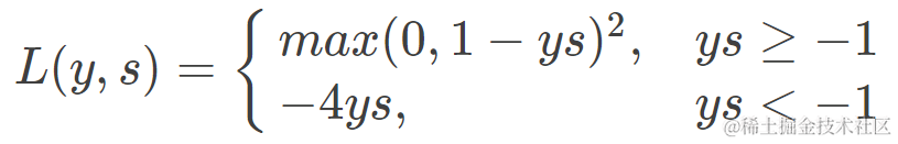 在之前介绍回归损失函数,我们介绍过 Huber Loss,它集合了 MSE 和 MAE 的优点。Huber Loss 也能应用于分类问题中,称为 Modified Huber Loss,其表达是如下: