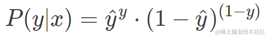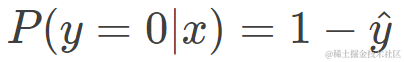 当真实样本标签 y = 0 时,上面式子第一项就为 1,概率等式转化为: